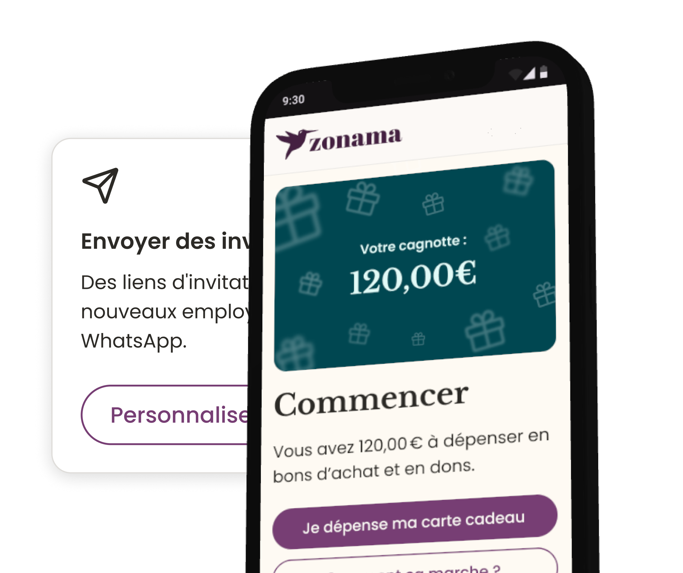Envoyer à vos salariés des cartes cadeaux digitales, livrées instantanément par email, SMS ou WhatsApp. Aucun compte, mot de passe ou application requis.